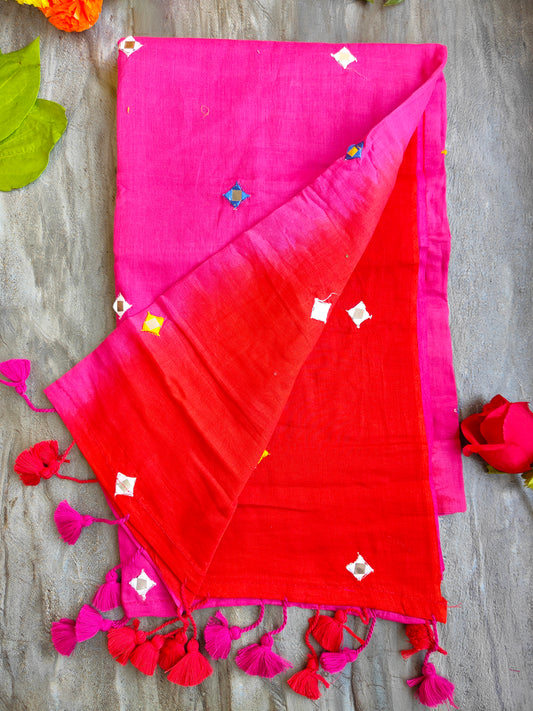 -40% OFFPINK AND RED SITARA MUL COTTON SAREE