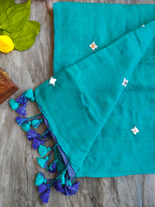 TEAL AND BLUE SITARA MUL COTTON SAREE
