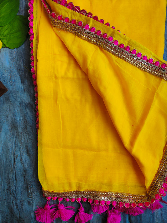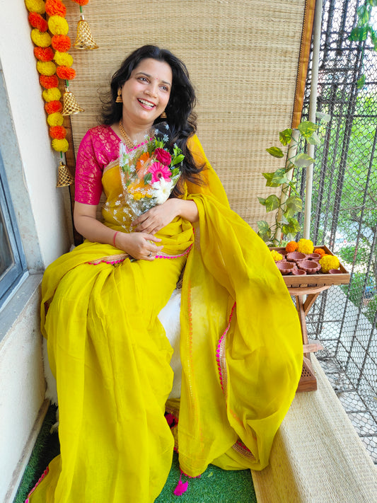 TRIANGULAR YELLOW MULMUL COTTON SAREE
