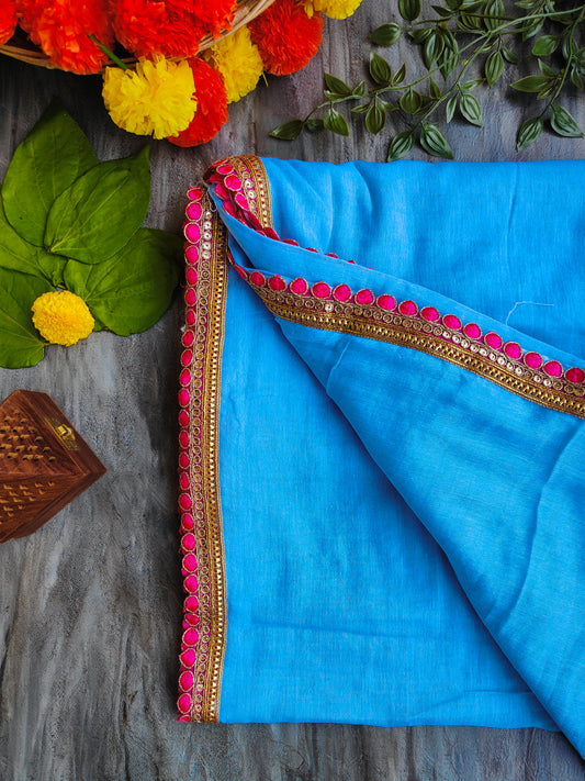-40% OFFSKY BLUE LACE MUL COTTON SAREE