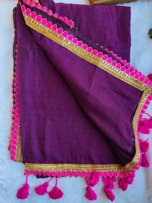 -60% OFFDEEP MAROON COTTON TISSUE SAREE