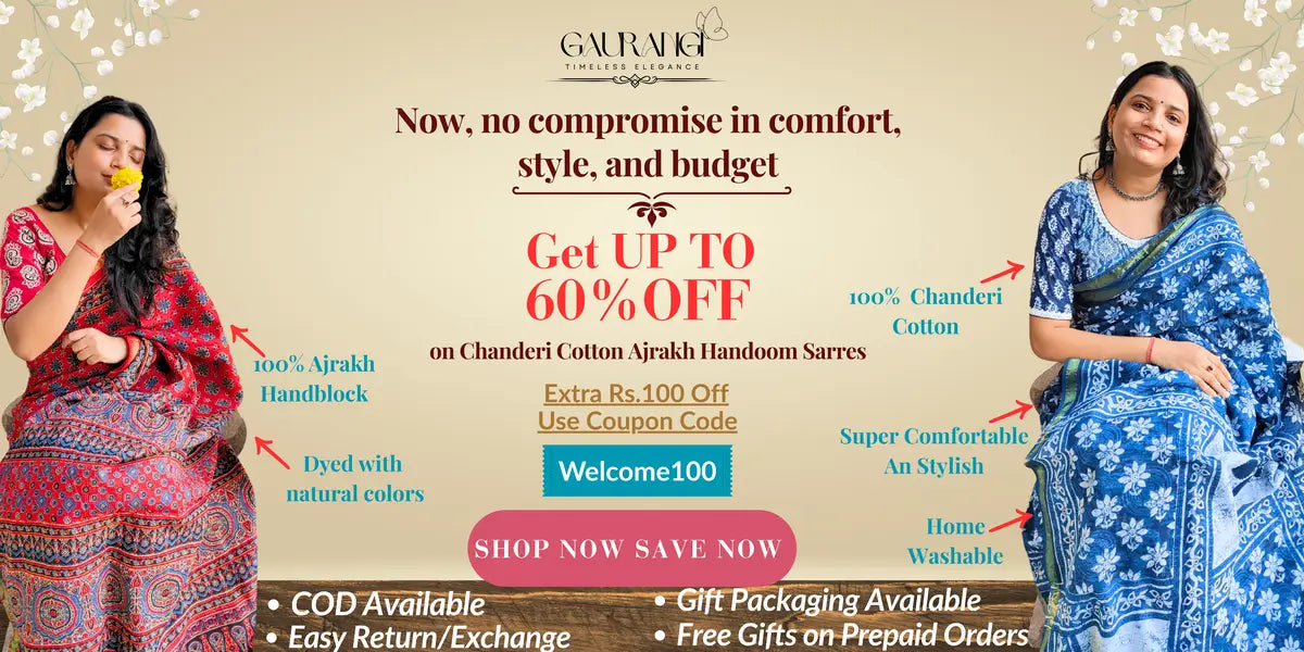 Best Seller -37% OFFHANDBLOCK PRINTED MUL COTTON SAREE