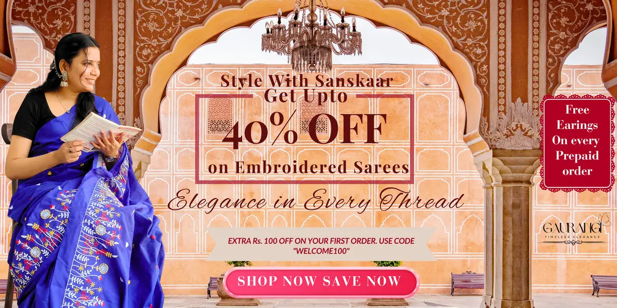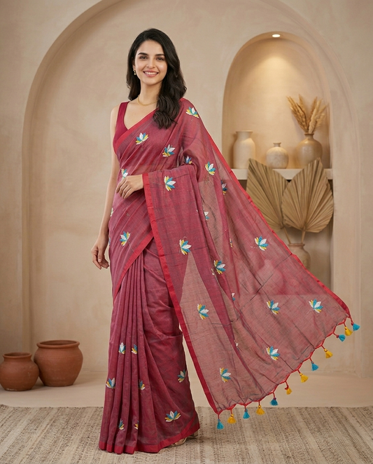 RED DOLL EMBROIDERED KHADI COTTON SAREE