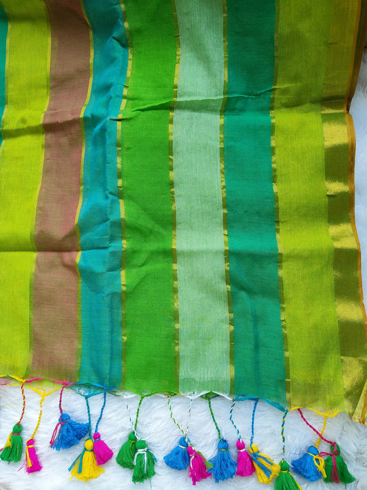 RAINBOW STRIPE GREEN MUL COTTON SAREE
