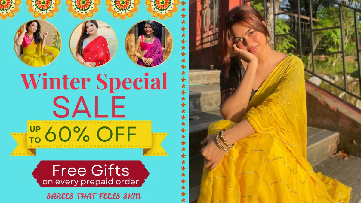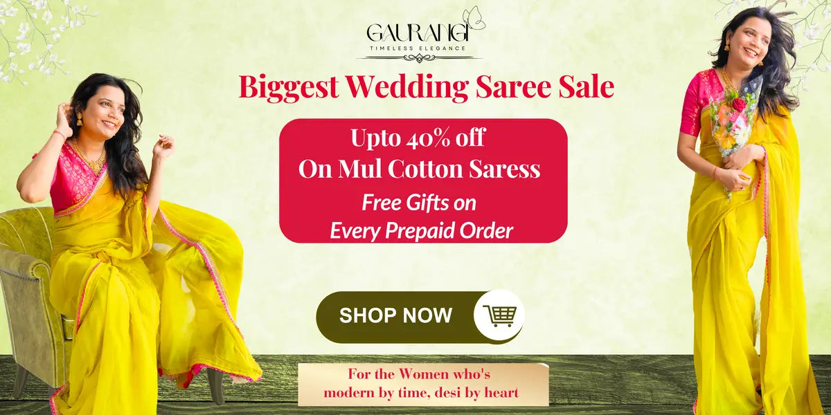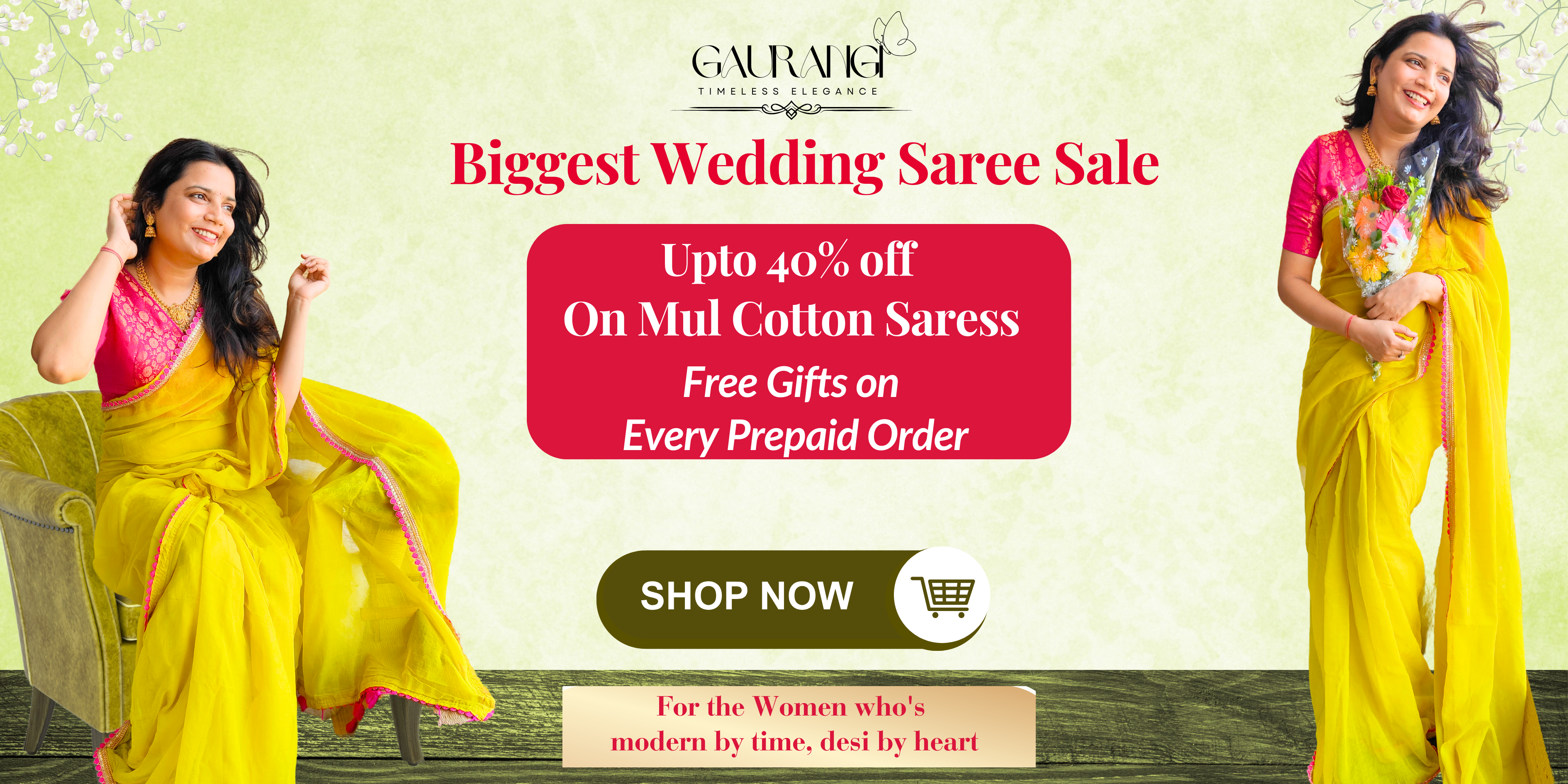 -55% OFFPASTAL YELLOW HEART MUL COTTON SAREE