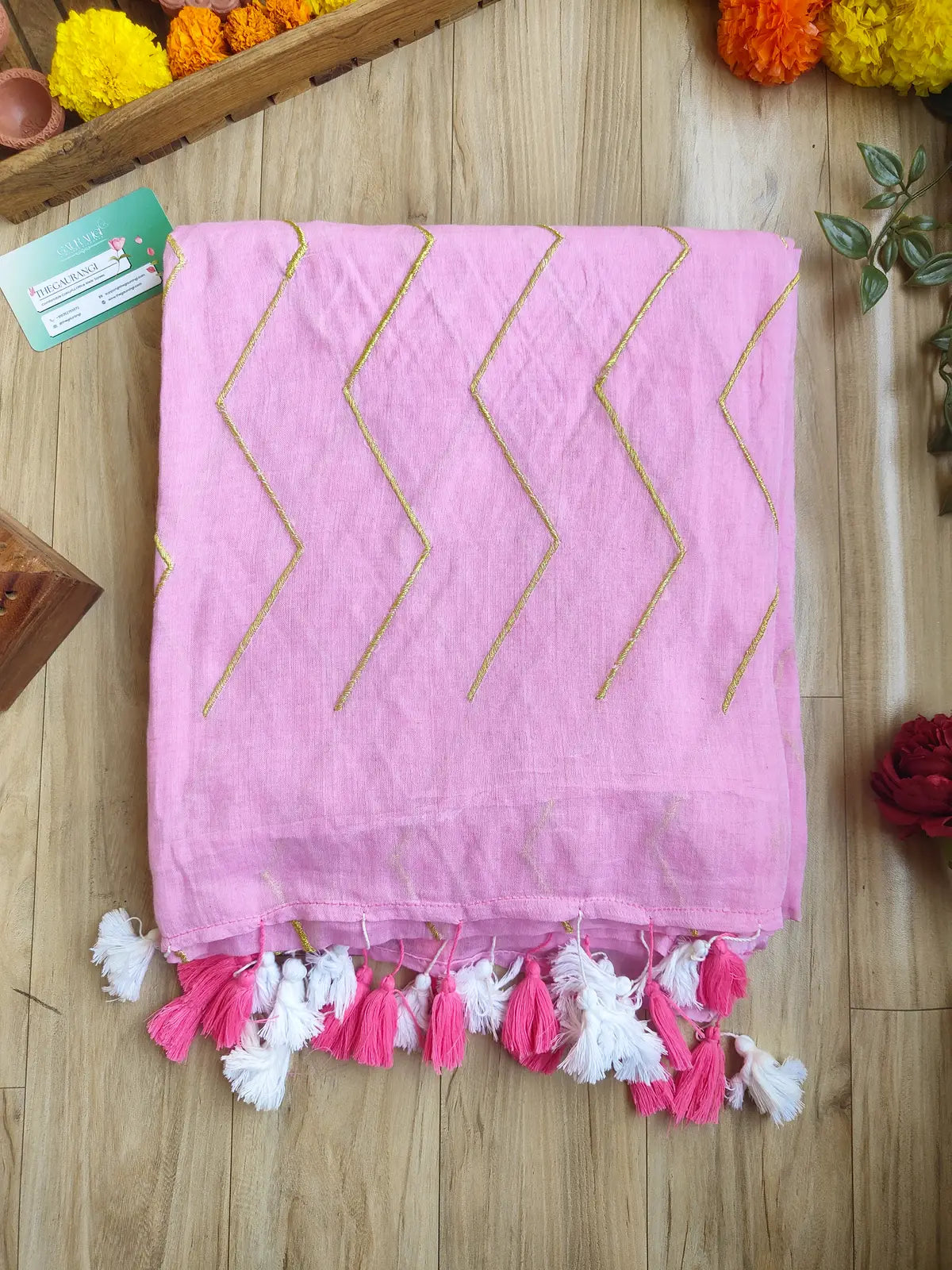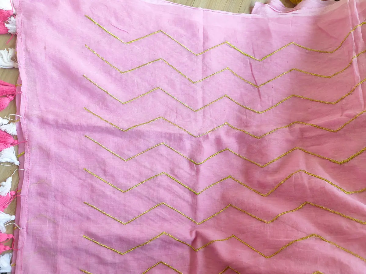 BABY PINK ZIG ZAG MUL COTTON SAREE