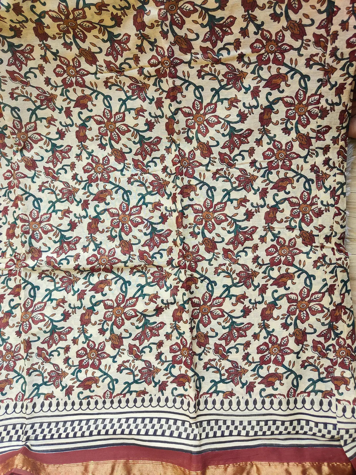 BEIGE AND RED AJRAKH CHANDERI COTTON SAREE