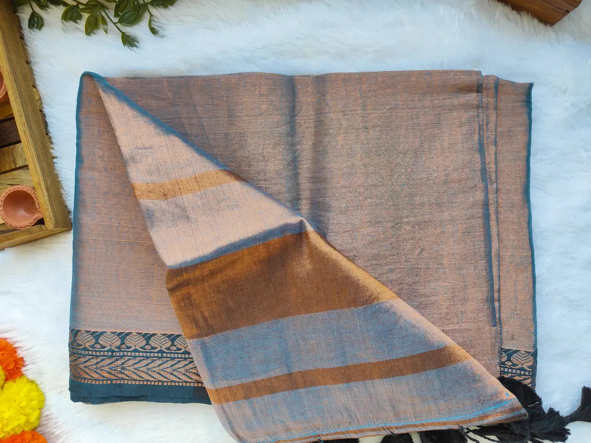 METALIC GREY BORDER COTTON TISSUE SAREE