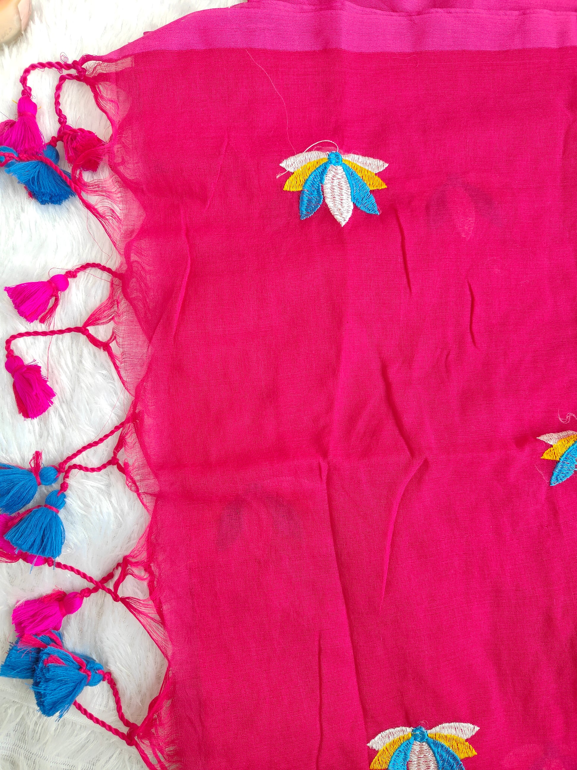 PINK LOTUS EMBROIDERED MUL COTTON SAREE