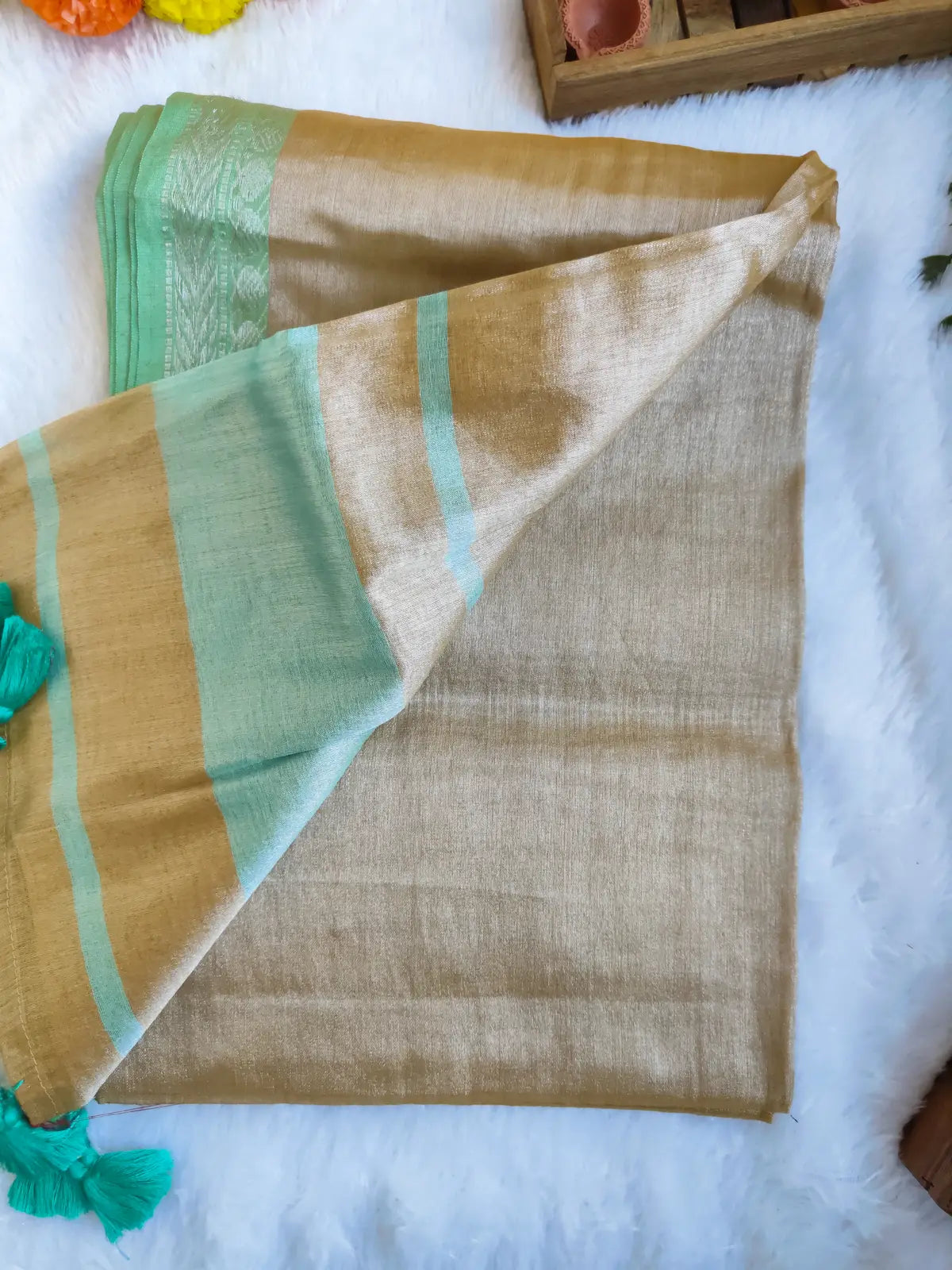 PISTA GOLD BORDER COTTON TISSUE SAREE