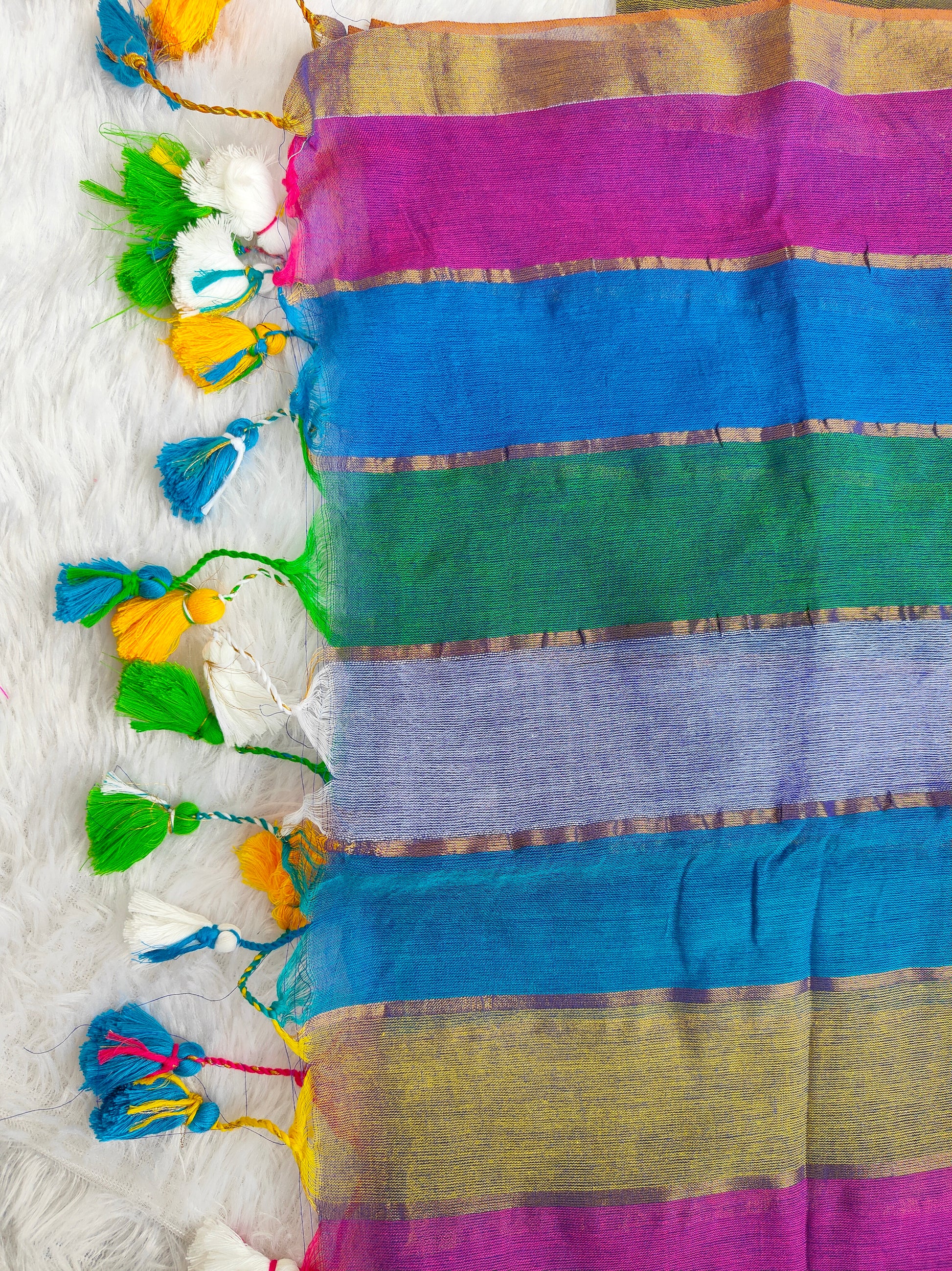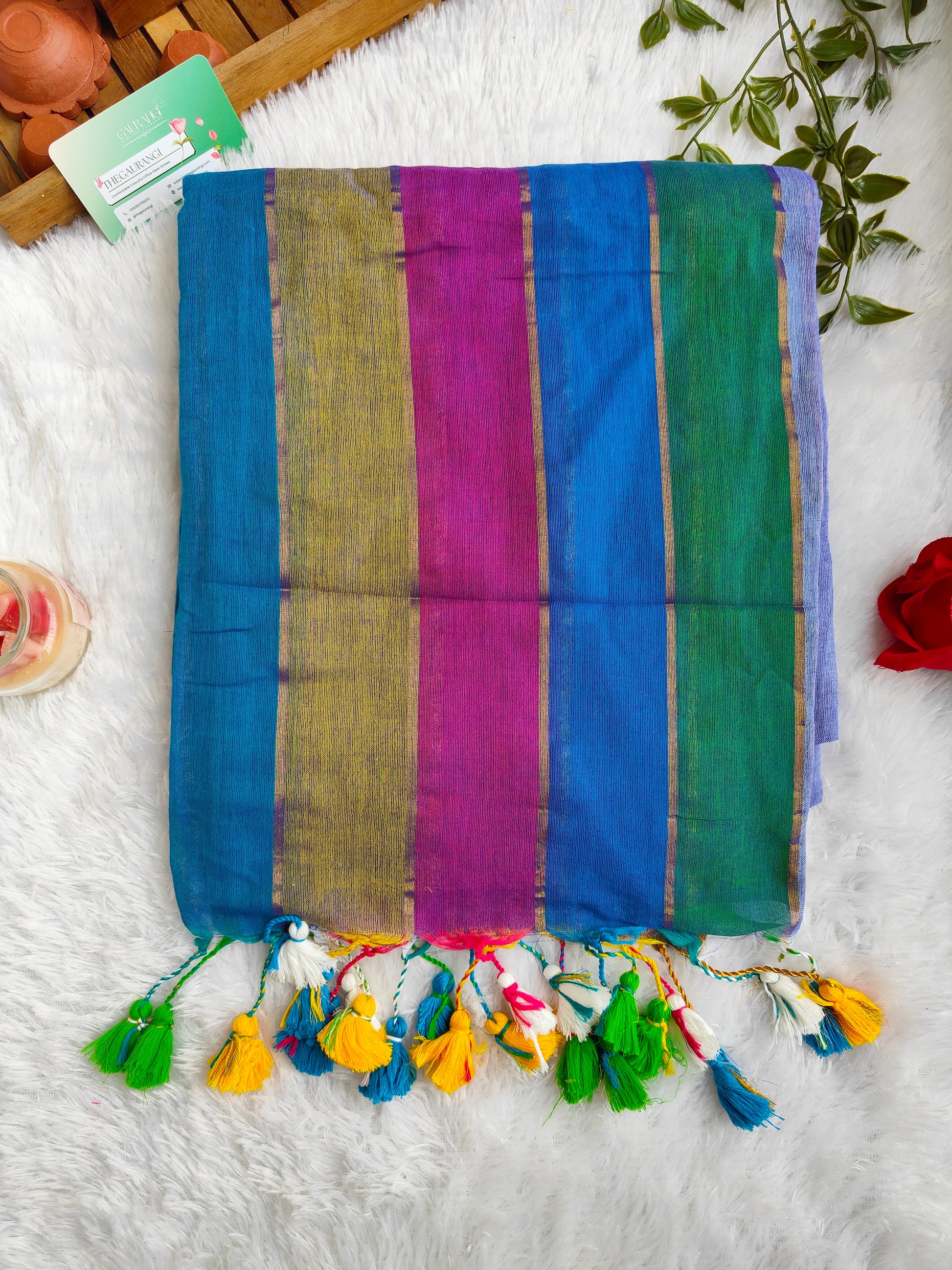 RAINBOW STRIPE BLUE MUL COTTON SAREE