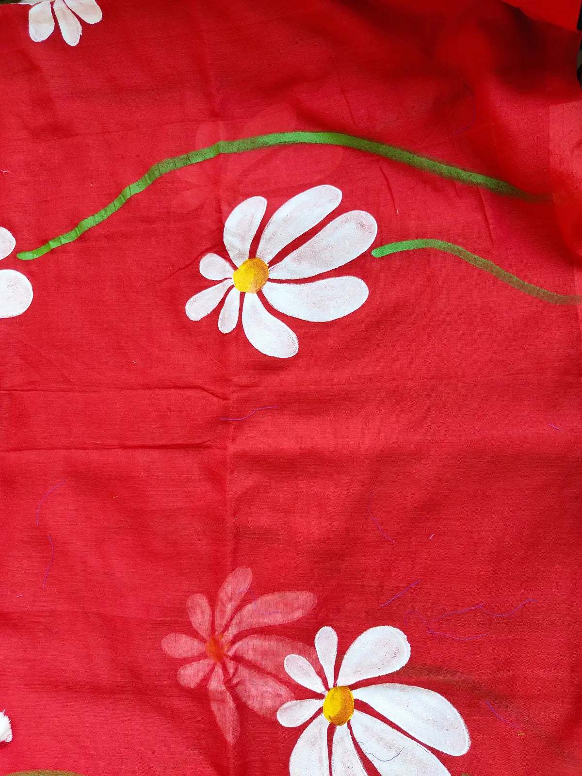 RED FLORAL HAND PAINTED MUL COTTON SAREE