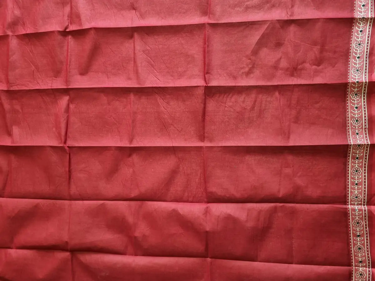 RED MUL COTTON SAREE WITH AJRAKH PRINT