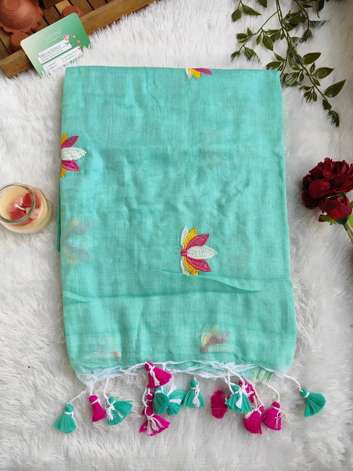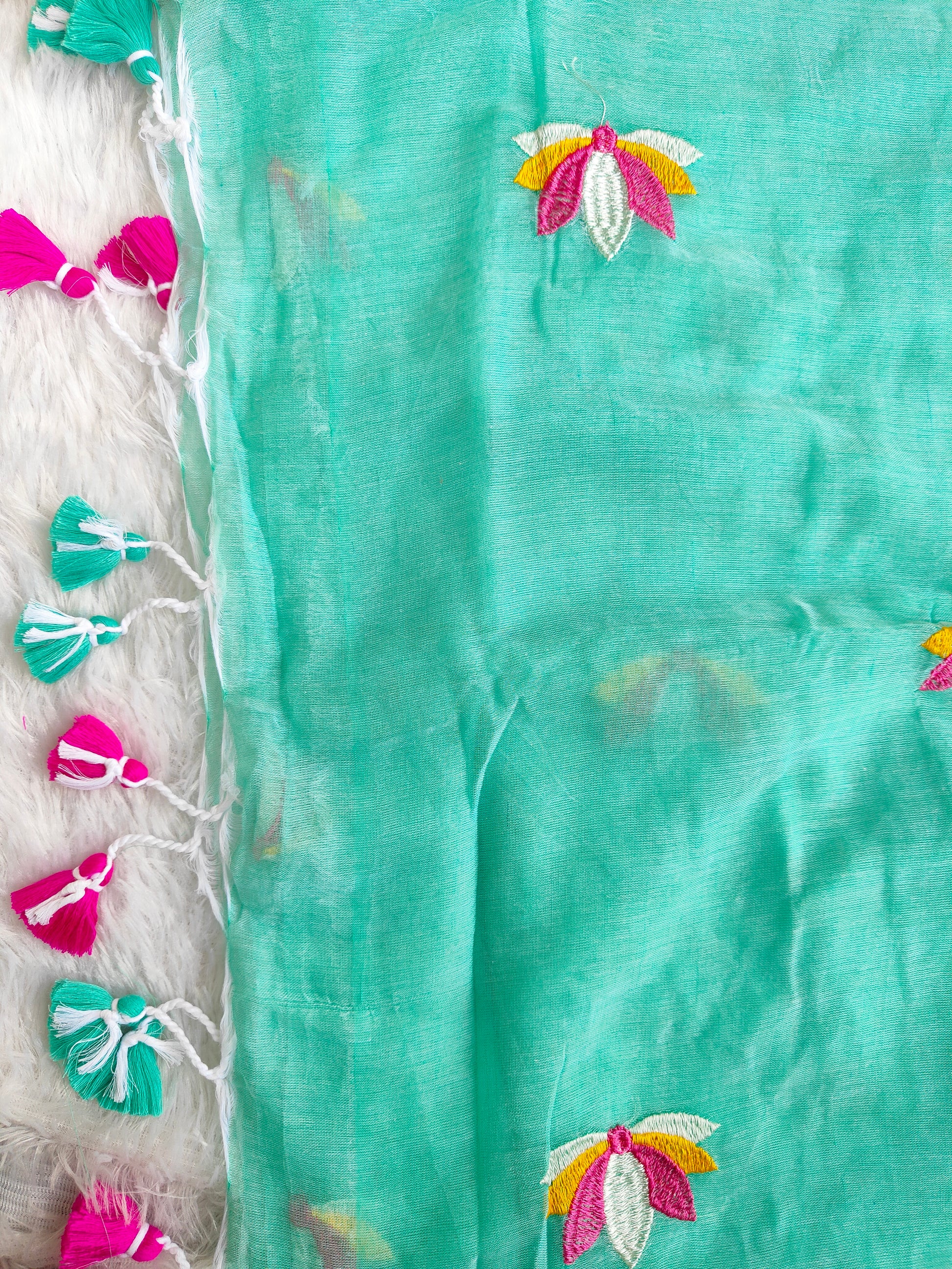 SKY BLUE LOTUS EMBROIDERED MUL COTTON SAREE