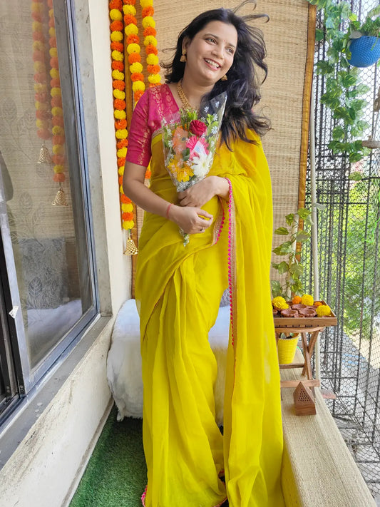 TRIANGULAR YELLOW MULMUL COTTON SAREE