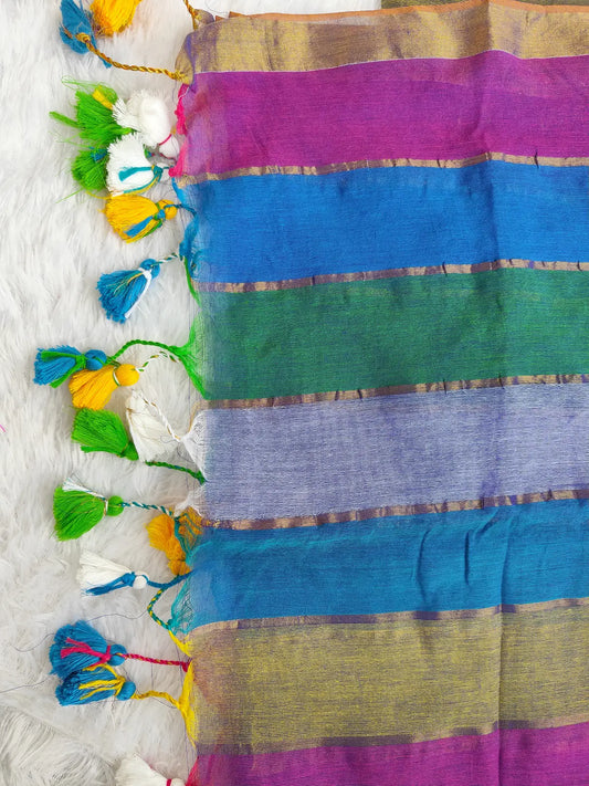 -22% OFFRAINBOW STRIPE BLUE MUL COTTON SAREE
